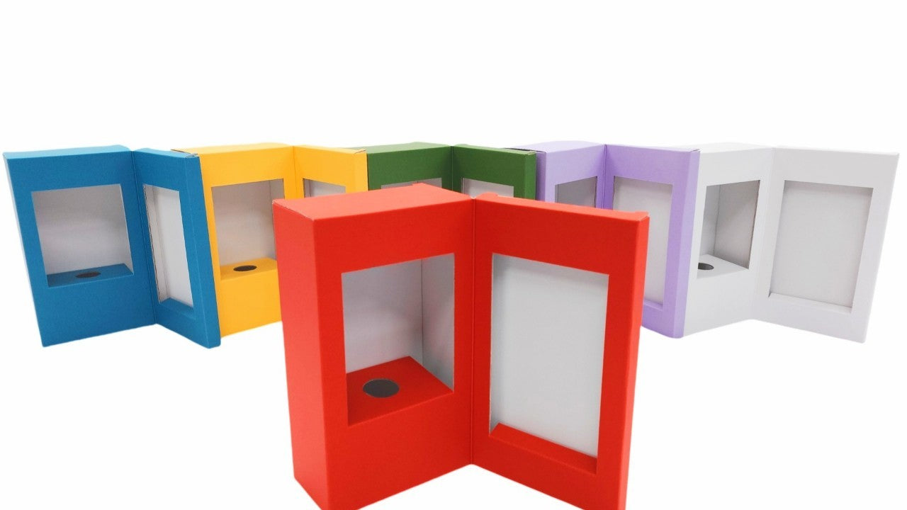 省スペース設計で、お部屋の棚にもスッキリ収納。ついつい写真を撮りたくなるカラフルなボックスたちは、オタク仲間との上映会や撮影会との相性バツグン。もちろん祭壇の上に飾って生誕祭を楽しむなどもできます!
